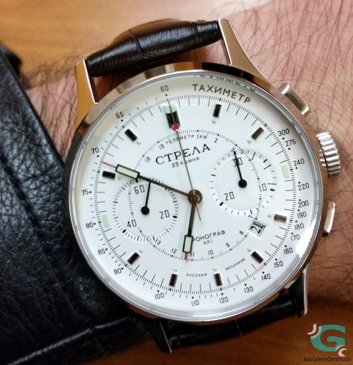 Così l'eroe di oggi, sarebbe l'ultima reincarnazione del Strela, un omaggio meritato. E 'disponibile in molte combinazioni, molte delle quali sono già sold out. Mi è piaciuto lo Strela Cosmo (CO38CYW24h -1251B-) con il calibro Poljot / MakTime 31681 e l'indicatore di 24 ore si trova a 6 e 25 rubini, ma il suo diametro 38 millimetri rimasto stretto per me, così ho optato per l'equivalente 42mm, ma indipendentemente dal 24h quadrante, cioè, il CO42CYW con movimento Poljot / MakTime 31681 del 23 rubini. Si è sorprendente che con tante opzioni, che cercavano i pochi che non si è verificato. Vale a dire: CO42LAB , CO42LAW , CO42CYB, CO42CYW , CO38LAB , CO38LAW , CO38CYB , CO38CYW , CO38LAG , CO38LAS , CO38LAB , CO38LAB24h , CO38CYW24h ...